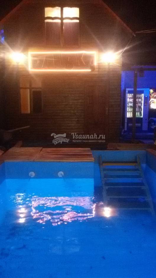Все самое необходимое: парная, бассейн, душ с обливным ведерком, комната отдыха. Можно попариться и поговорить с друзьями, сообразить самоварчик.